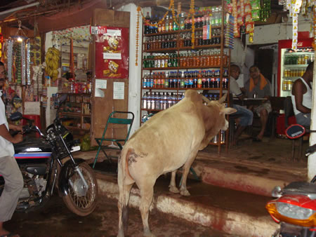 | Ici aussi les vaches sacrées encombrent la circulation mais cette fois des pietons. | ![]() |