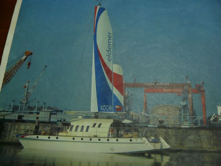 Eldemer, prototype catamaran avec une aile rigide en aluminium a été construit par Rad en Inde. Malheureusent après dématage au Sri Lanka, un mât traditionnel avec 1 genois sur chaque coque ont été gréés. |