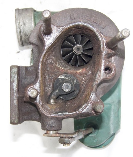 | Ci-dessous notre turbo qui a vaillament travaillé pendant 700 heures moteur soit environ 350.000 km.On voit que la fonte a été emportée et brûlée par les gaz d'échappement.Les parois ne font plus que 2 ou 3 mm d'épaisseur. | le nouveau turbo, qui nous l'espèrons, durera aussi longtemps que l'ancien. |