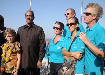 Le ministre du tourime est venu donner le départ de l'étape Bombay- Cochin. Nous sommes en compagnie de Pilar et Michel du catamaran Shelter et de la petite Lea de Storm Dodger. |